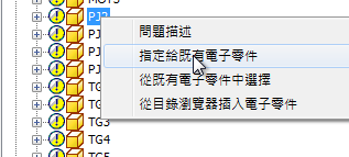 - 在 PJ2 上按一下右鍵,並選取「指定給既有的電氣零件」。