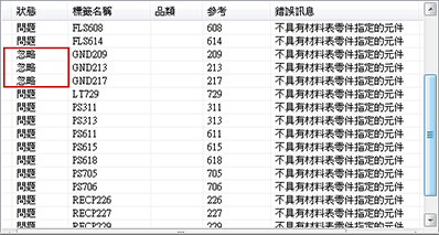 - 如果您匯出或列印檢核結果,忽略的錯誤將包括在內,並顯示在「狀態」欄中。