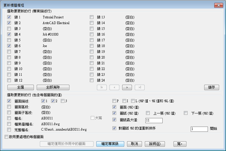 將標題欄框屬性更新為對映的 AutoCAD Electrical toolset 值。