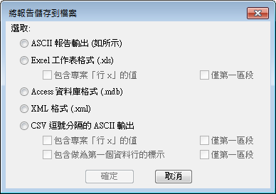 - 在「報告產生器」對話方塊中,選取「儲存到檔案」。