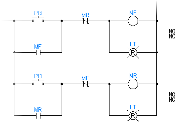 在具有相同預設標籤的整個電路內,可以有多個父/子關係。整個電路包含主電路樣板和任一分支或巢狀電路樣板。例如,逆向馬達起動器有兩個起動器線圈,正向和逆向。每個父線圈必須連結至正確的子輔助接點和電源接點,但是它們可能均有相同的預設標籤值「M」。若要完成正確的父/子連結,請遵循以下步驟。