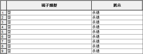 依預設,建立新 PLC 模組時,PLC 資料庫檔案編輯器將根據「新模組」對話方塊中定義的端子數量,列示同樣多的空白「端子類型」欄位。