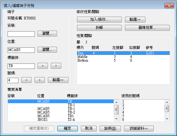 5. 在「插入/編輯端子符號」對話方塊中,按一下「確定」。