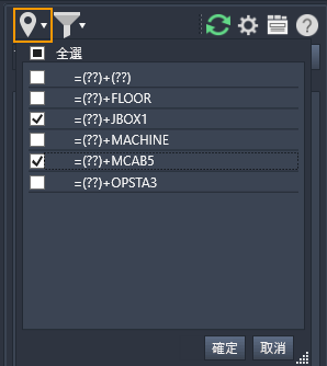 根據位置和安裝值,篩選元件樹狀檢視中的元件。