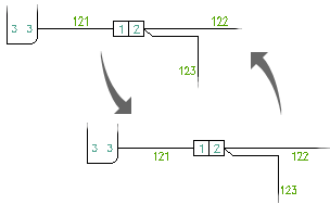 如果選取的配線號碼位於線內,則會根據圖面性質切換至上方或下方。如果所選配線號碼開始位於線上或線下,則會切換至線內。