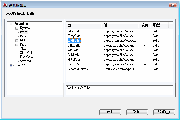 「系統編輯器」對話方塊 (AutoCAD Mechanical 工具集)