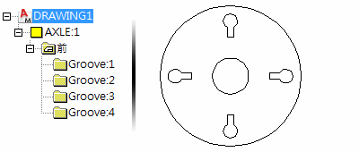 在此範例中,資料夾 Groove:1 包含上部的槽,並被加入陣列中以建立其他資料夾。因為資料夾是關聯的,所以修改一個槽會導致所有槽更新。