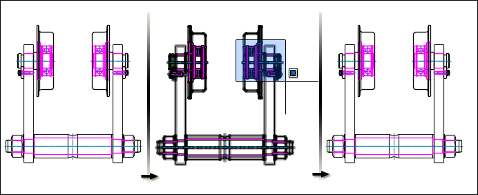 AutoCAD Mechanical 工具集 提供了一種區分選取模型空間幾何圖形 (屬於元件視圖/資料夾) 與選取元件視圖/資料夾的方式。