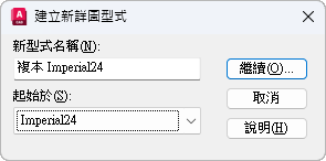 命名新詳圖型式。依預設,新的型式的名稱是「起始於」型式名稱,以「複本」做為字首。