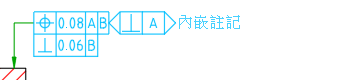 頂端註記 指定必須顯示在特徵控制框上方的文字。在繪製區中,註記和特徵控制框做為單一圖元一起移動。 |