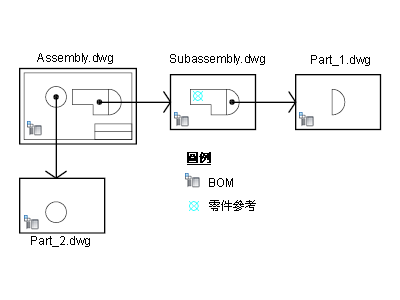 零件/次組合的典型圖面包含該零件/次組合的多個視圖。因此,您無法將零件/次組合圖面做為外部參考貼附至組合圖面,從而限制外部貼附工作流程的使用。對於此類情形,您可以使用材料表貼附工作流程。