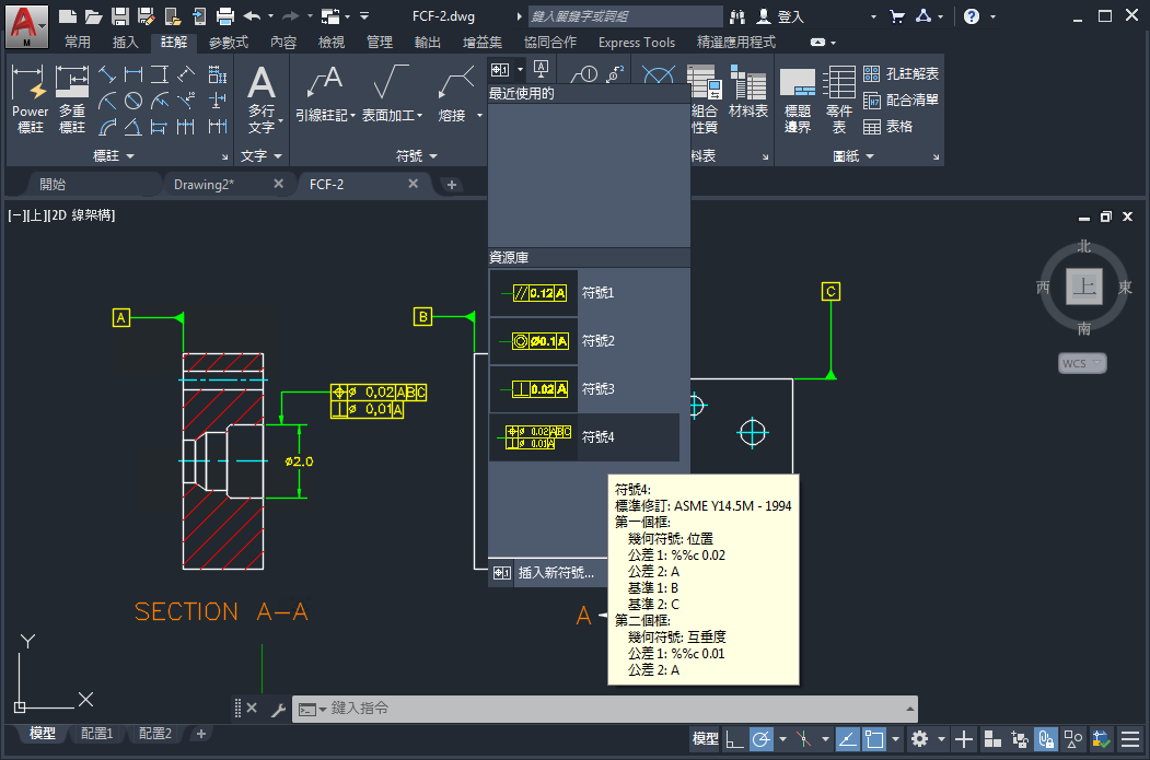 符號資源庫提供了一種在圖面中插入常用符號的簡便方式。