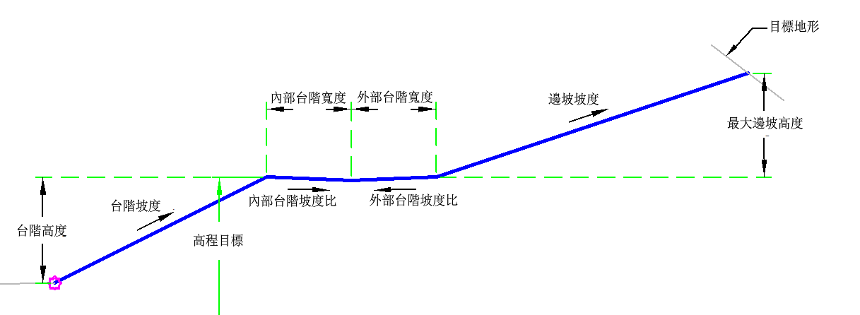 在配置模式中,此次組合可繪製帶台階的開挖坡度。