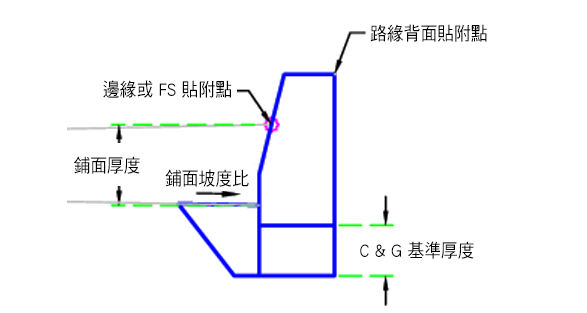| C & G 基準厚度 | 路緣與邊溝下方基準的厚度 | 正數 |