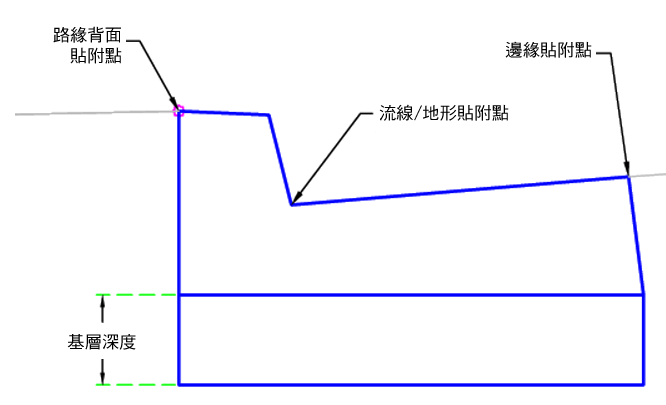 | 貼附點 | 指定路緣貼附點。 | Lip/BackCurb/Flowline-Surface |