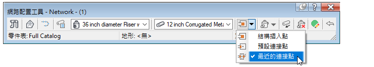 配置管網時,可以選取要使用的連接點類型。配置管網後,也可以重置連接點。