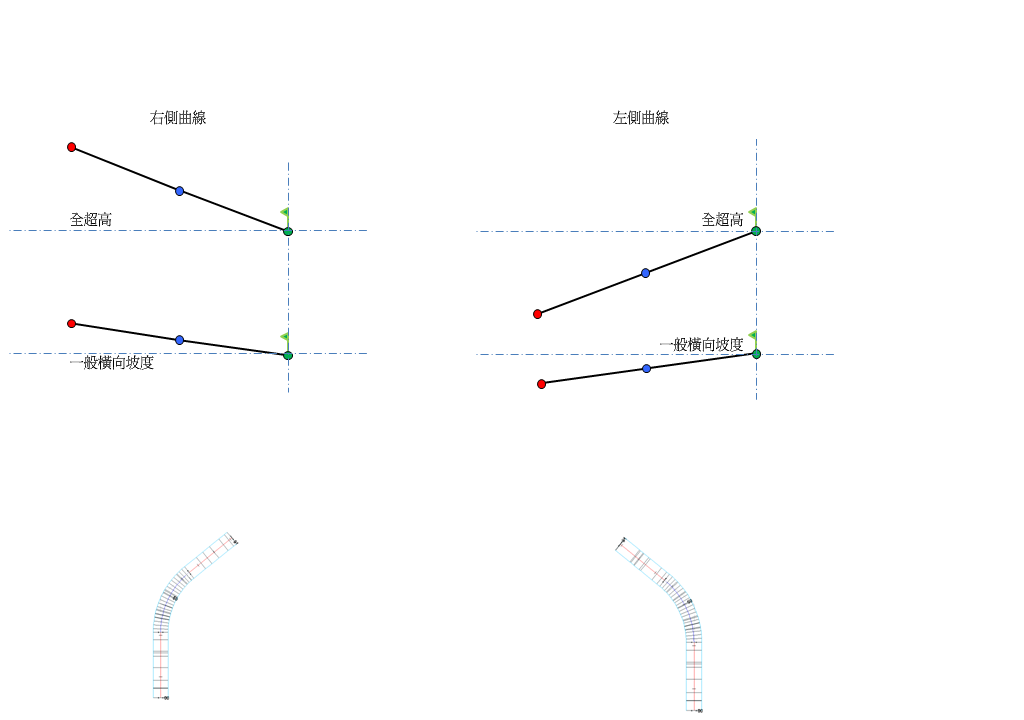 位於右側的樞軸 (未分割的平面道路上的超高)