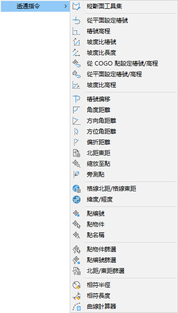 某些 Autodesk Civil 3D 透通指令需要點高程的 Z 座標。若要取得更多資訊,請參閱〈關於透通指令設定〉。
