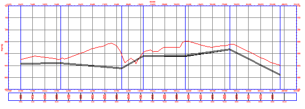 如果參考地形的高程大幅變化,建立的壓力管網可能有些部分比地形過高或過低。您可以使用「跟隨地形」指令在縱斷面視圖中編輯壓力管網,以使其更接近地形。