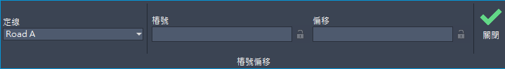 - 啟用「透通指令」工具列,然後選取「樁號偏移」