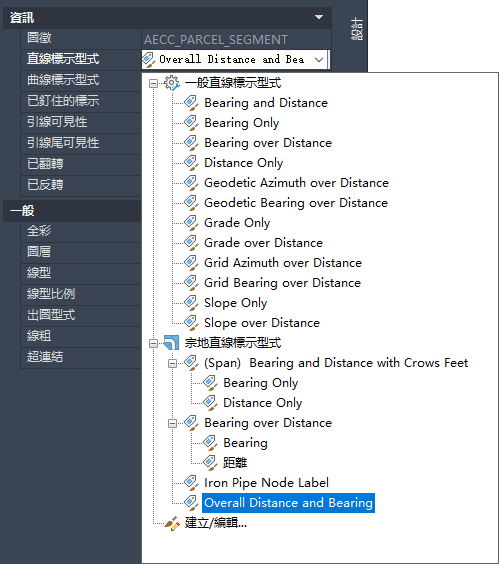 請注意,在下列範例中,除宗地線標示型式外,一般直線標示型式也可在編輯宗地線標示時使用。