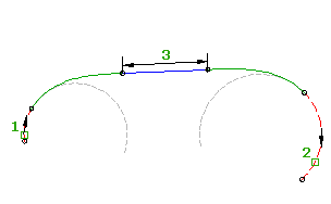 螺旋線參數是自動計算的。如果編輯任一貼附曲線 (1、2),則直線長度 (3) 不會發生變更。