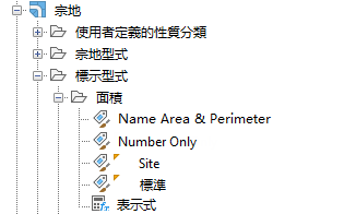 宗地面積標示會如同其顯示於「標示型式管理員」的預覽中般地顯示於圖面中