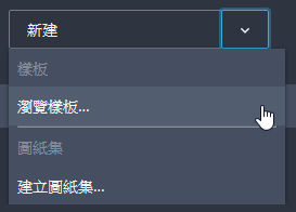 - 按一下向下箭頭會顯示其他選項,可用於選取所要使用的樣版,也可以選擇樣版來建立圖紙集。