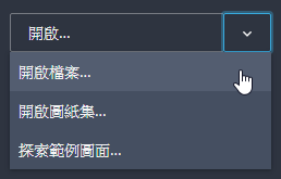 - 按一下向下箭頭會顯示其他選項,可用於開啟圖紙集或範例圖面。