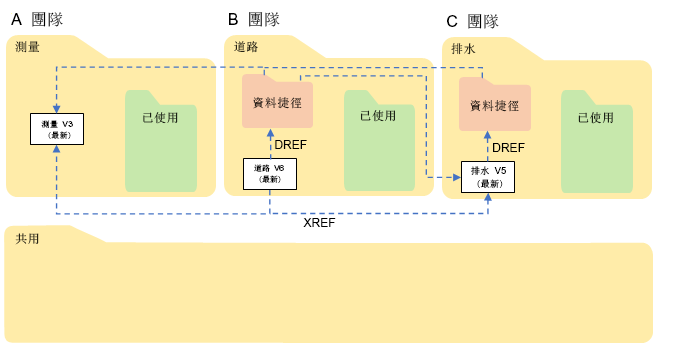 - 對其他團隊在其工作資料夾中的 DWG 進行 XREF。
