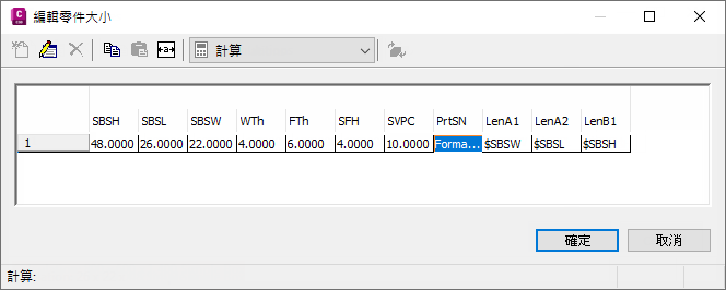 註: 在模型中設定的計算值無法在「編輯零件大小」對話方塊中進行編輯。若要變更這些值,您必須編輯此模型。