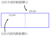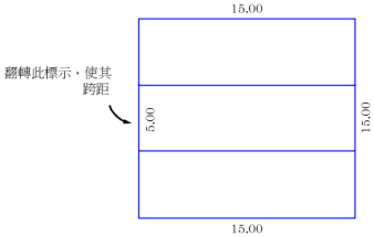 即使已將標示設定為「跨越外部線段」,也必須將其放置在宗地外部以標示跨距