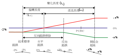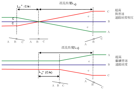 本小節介紹了未分割的道路的情況,並說明了對於每種情況將如何套用超高。