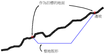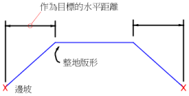 整地版形可以是開放的或封閉的圖形。整地版形必須是地勢線、界址線或產生的其他整地的邊坡線。