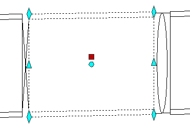 此掣點可讓您沿壓力管移動垂直彎頭。沿一個管滑動垂直彎頭時,其他連接的管仍保持連接,且其方向和長度會變更。選取的垂直彎頭無法超過其他壓力管網零件。