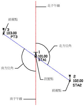 方向是從北或南子午線測量的角度。