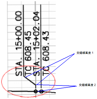 使用標示高度交錯選項,避免密集資料區帶中出現標示衝突的情況。交錯選項可以透過「縱斷面視圖性質」或 AutoCAD「性質」選項板取得。