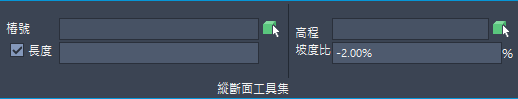建立和編輯縱斷面時,可使用「縱斷面工具集」透通指令來指定樁號、高程、坡度比或長度值。