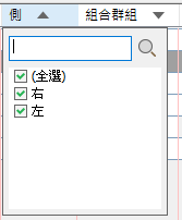 按一下欄標頭會顯示搜尋方塊和勾選方塊,可供指定篩選條件。