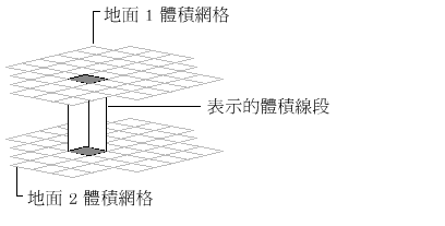 方格法挖填體積地形是以使用者指定的基準地面、比較地形、格線間距以及方位為基礎的差異網格地形。