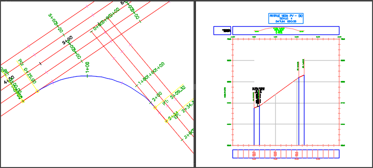 您可以使用連接定線功能,以建立在兩個相交定線之間變化的定線,並建立在其縱斷面之間變化的縱斷面。