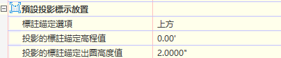 將「標註」選項用於投影或交叉標示型式中的起點或終點錨定點時,「投影的標註錨定出圖高度值」選項可控制引線高度。此值以圖紙空間單位計算。