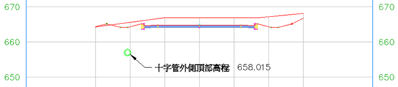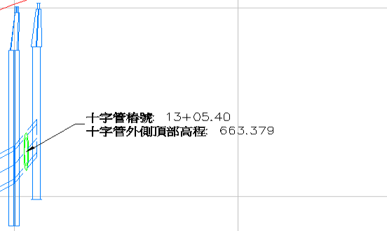 如果十字管沿著定線移至其他樁號,則標示將被更新為新樁號和高程資訊。