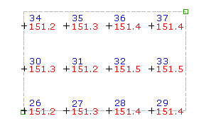 - 若要變更格線,請輸入 Yes,然後按照以上所述重新輸入旋轉角度、格線基準點、格線 X 間距、格線 Y 間距和右上角。