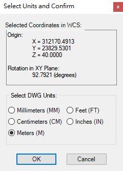 - 在「選取單位並確認」對話方塊中,選取圖面單位。按一下「確定」。