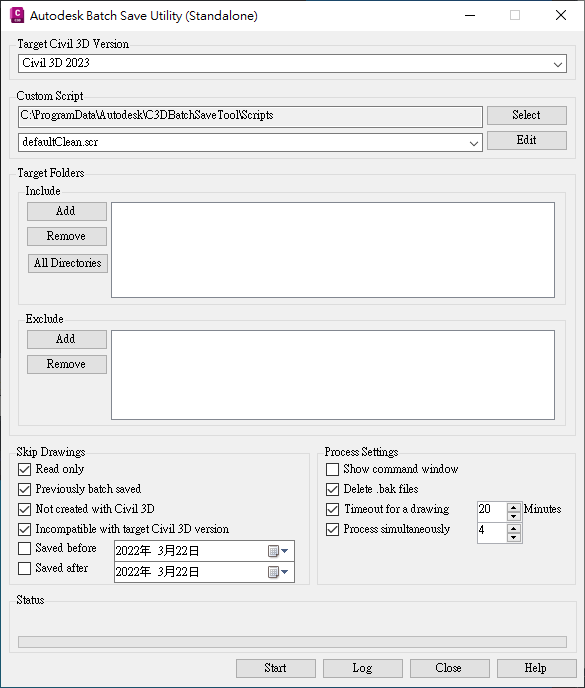 - Autodesk Batch Save 公用程式還可以用來將 2014-2017 版 AutoCAD Civil 3D 效能降低問題的解決方案一次套用到多個檔案。將此 Hotfix 和 Service Pack 套用至您的 AutoCAD Civil 3D 版本後 (請參閱以下資訊),便會在開啟並儲存圖面檔案後解決效能降低的問題。您可以使用 Autodesk Batch Save 公用程式,一次開啟與儲存多個檔案,藉此套用效能降低問題的解決方案。
