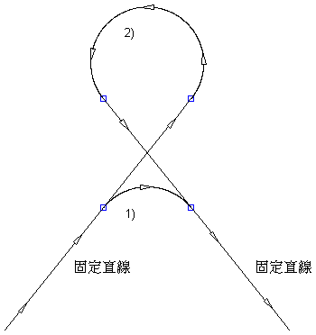 在兩個圖元之間加入具有指定角度範圍和半徑的自由曲線。