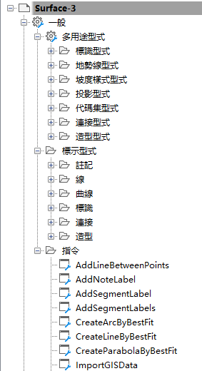 管和地形物件可以共用「一般多用途型式」集合中的彩現型式,而廊道和整地可以共用此資料夾中的其他型式。