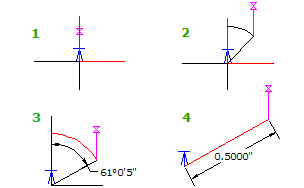 從起點 (1) 指定象限 (2)。然後指定方向角 (3) 和距離 (4)。