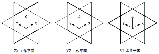 建立 WCS 的標準 ZX、YZ 和 XY 工作平面。